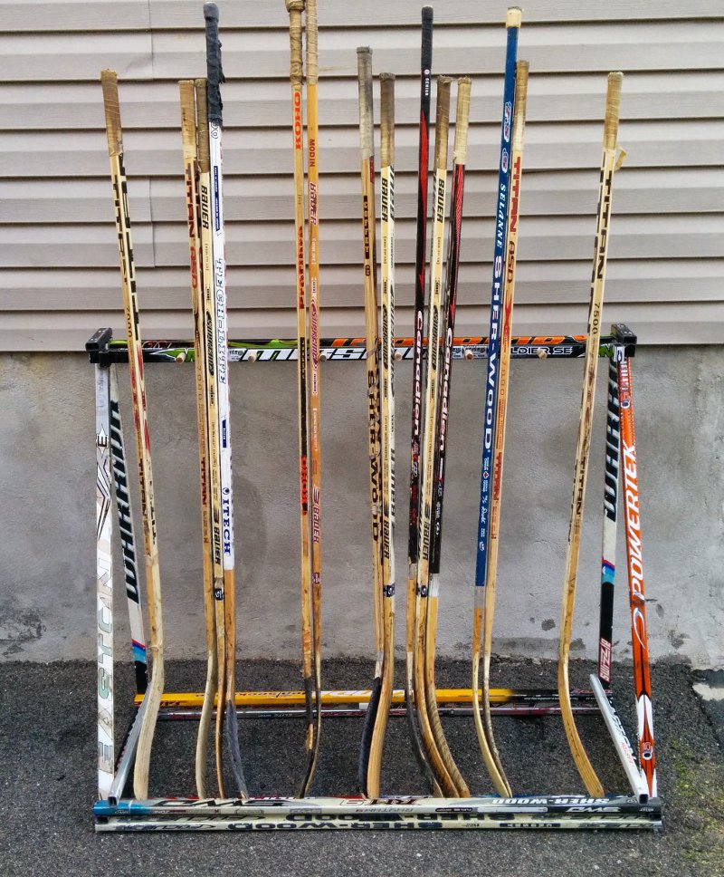 The hockey stick rack is not difficult to build. It only involves making some careful measurements and trusting the design.