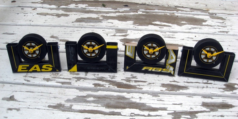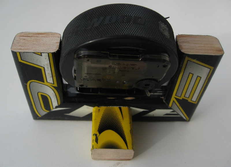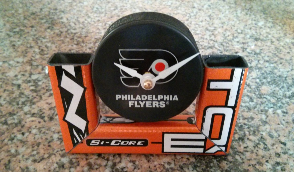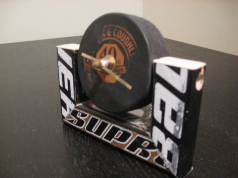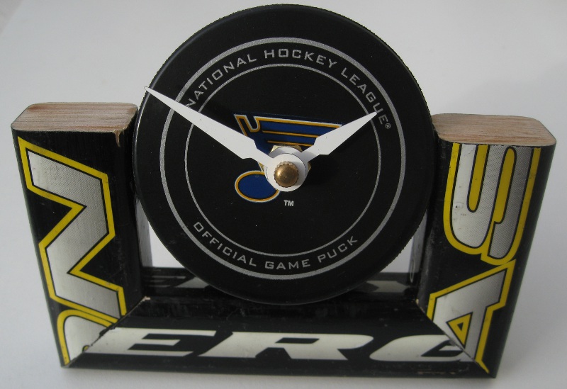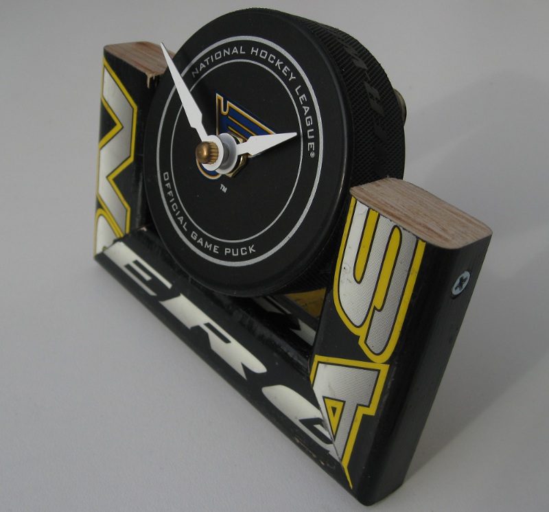 A compact desk clock using a single hockey stick and a hockey puck with clock movement. Great beginner project for clock-making.