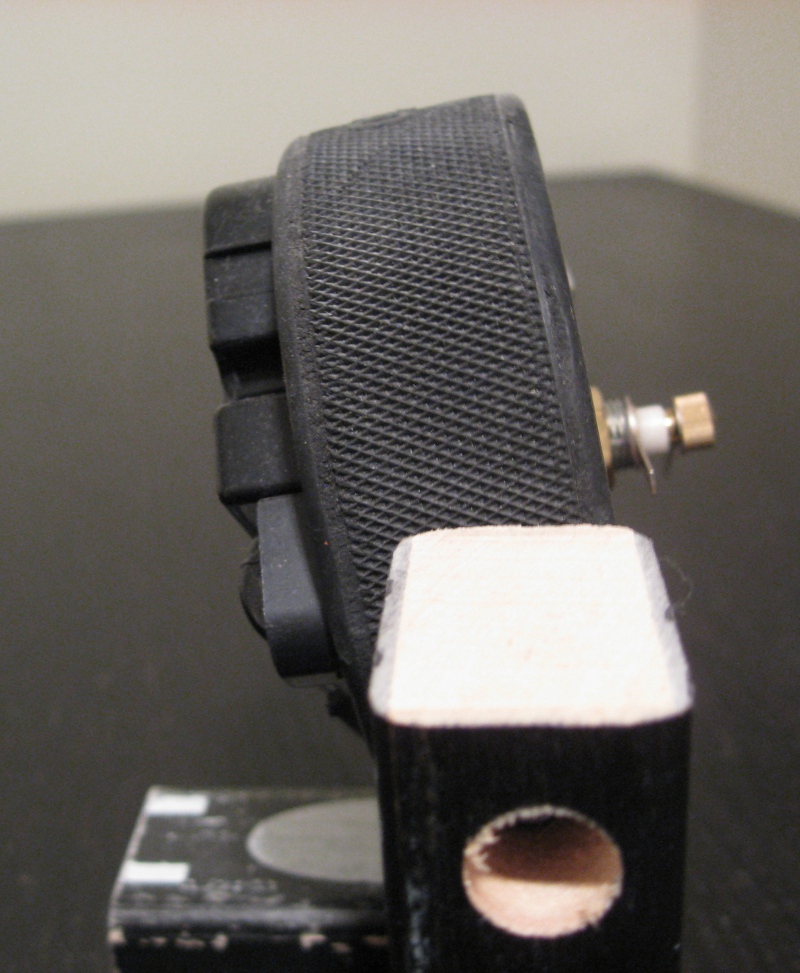 - Raise the bottom of the puck slightly off the bottom piece (about 1/8″) to get the rotation you want — this puts the puck attachment screws/nails at about 25/64″ from the top of the side pieces