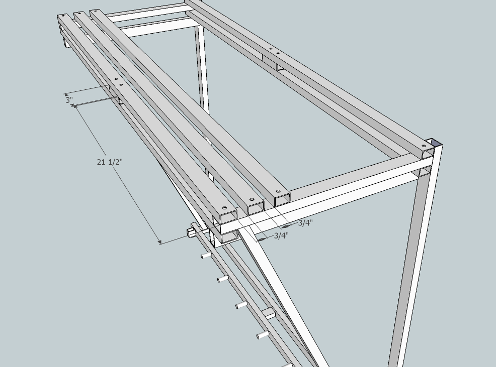Also glue a 1.75″ support piece into the midsection (23″ from the edge) between the two cross pieces. Not necessary, but highly recommended for additional support.